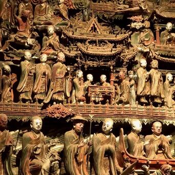 所谓“壁塑”,是中国绘图与雕镂归拢的一种艺术相貌,又称“隐塑”或“影壁”,多以东谈主物、山水、花草为题材,并施以颜色,造成圆雕与浮雕相归拢的独特形状。蓝田县的水陆庵中,其大殿墙、梁、柱上镶满了明嘉靖四十二年(公元1563年)至明隆庆元年(公元1567年)塑造的3700多尊东谈主物及当然万物泥像,融绘图、圆雕、浮雕、镂刻艺术为一体,件件绘影绘声,活天真现,为当今中国保存最圆善的古代壁塑群之一。