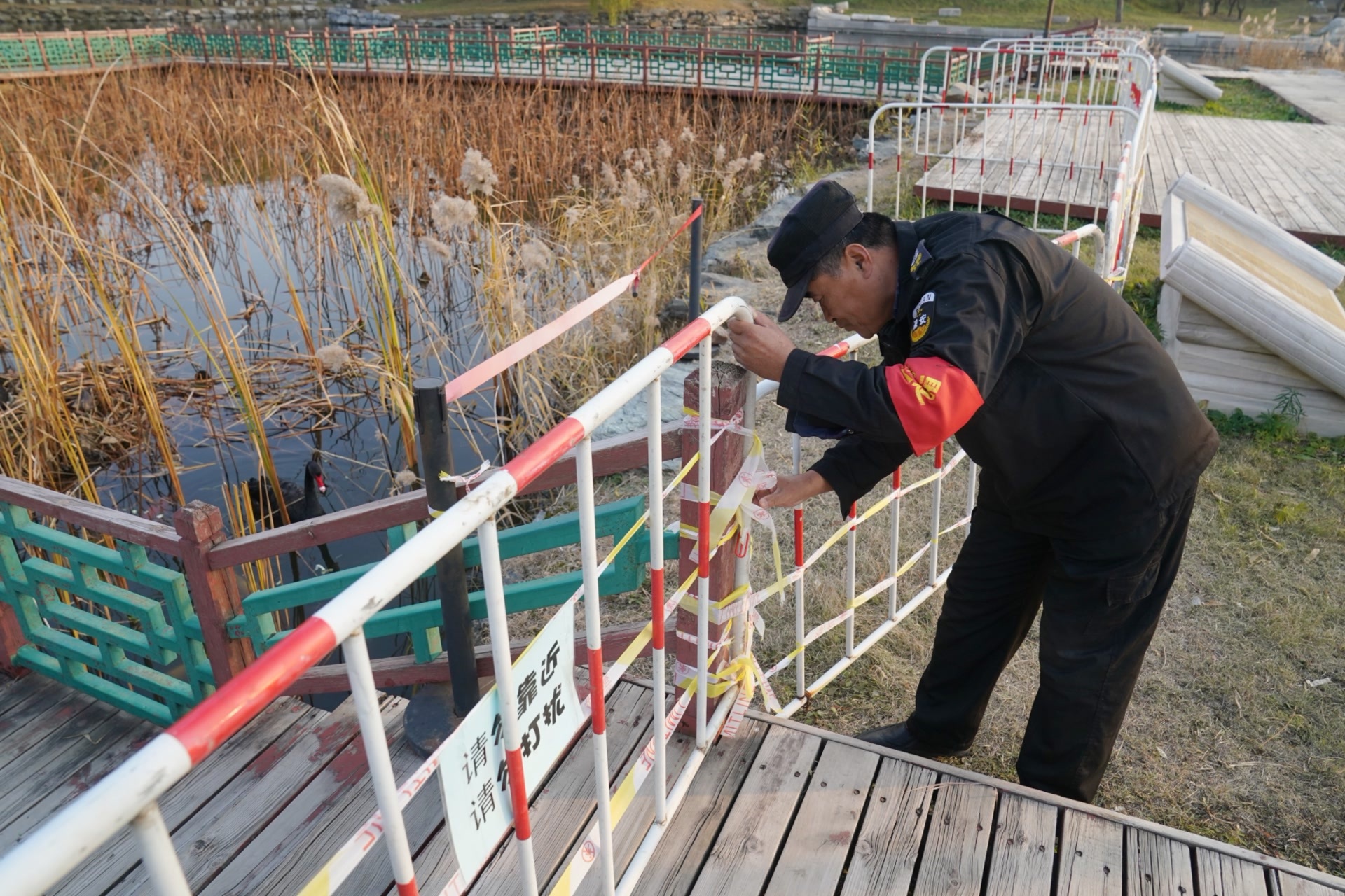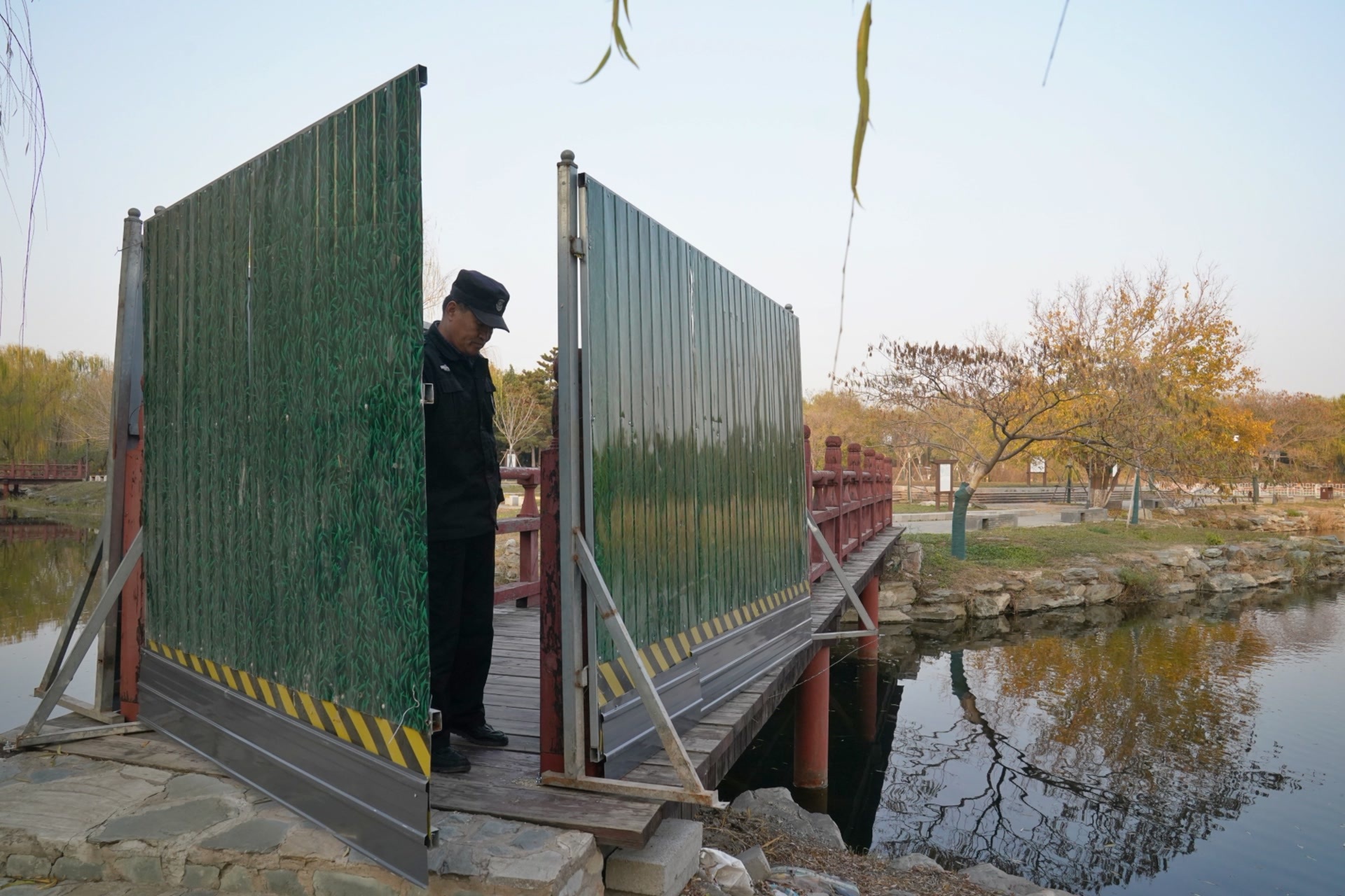 记者看到,在濂溪乐处,有一窝正在抱窝孵化的黑天鹅窠巢,有两座木桥通往这个区域,园方在这两座木桥上搭建了铁质的扯后腿板,白昼时敞开,晚上则会关闭,驻防野活泼物侵犯黑天鹅的窠巢。隔壁有几名保安正在往返返回地巡缉。这片区域上方装置了录像头,不错对这里进行全时监测。