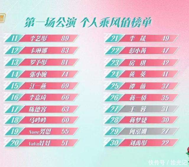 初舞台还是老一套,炒冷饭,一公选的歌,亦然那种涎水歌,听两遍就腻了。
