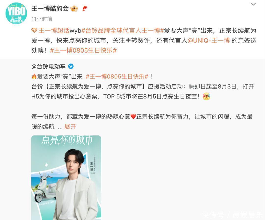 当今,该活动正在各大网罗社区火热进行,尤其在王一博的粉丝圈险些炸开了锅,不少王一博粉丝暗示,王一博确凿选对了代言品牌,台铃让咱们不错为我方城市助力,思思如若我方的城市地标大致点亮王一博的寿辰夜空,险些太有好意思瞻念啦!