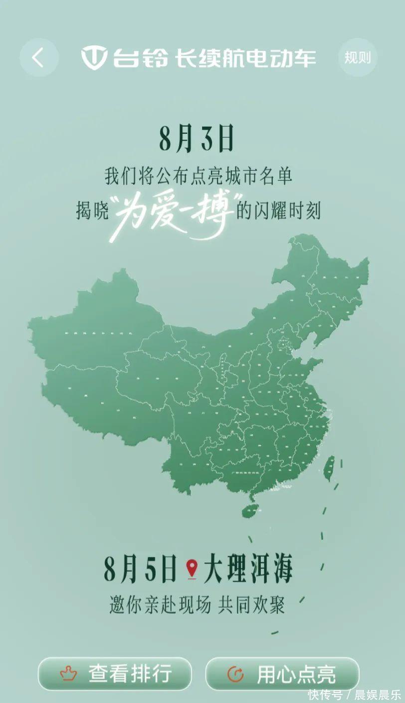 坐窝,迅速登陆台铃官方王一博应援H5页面,投票点亮你的城市开云体育,TOP5的城市将在8月5日点亮寿辰夜空,更让粉丝尖叫的是,参与活动还可与台铃沿途共赴大理,见证正统长续航的“黑科技”实力,续写大理的放纵东说念主生故事。