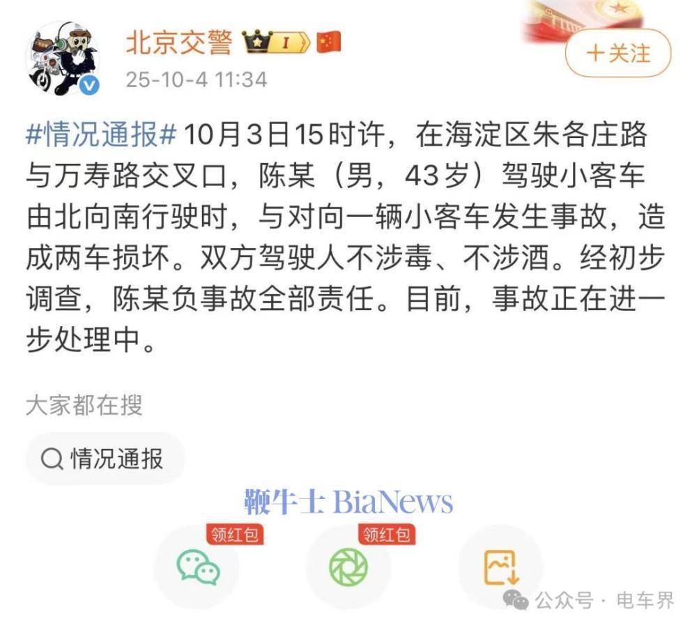 北京交警通报陈震车祸探究情况:10月3日15时许云开体育,在海淀区朱各庄路与万寿路交叉口,陈某(男,43岁)驾驶小客车由北向南行驶时,与对向一辆小客车发生事故,酿成两车损坏。两边驾驶东说念主不涉毒、不涉酒。经初步探听,陈某负事故一齐连累。现在,事故正在进一步持续中。(转载自:电车界)