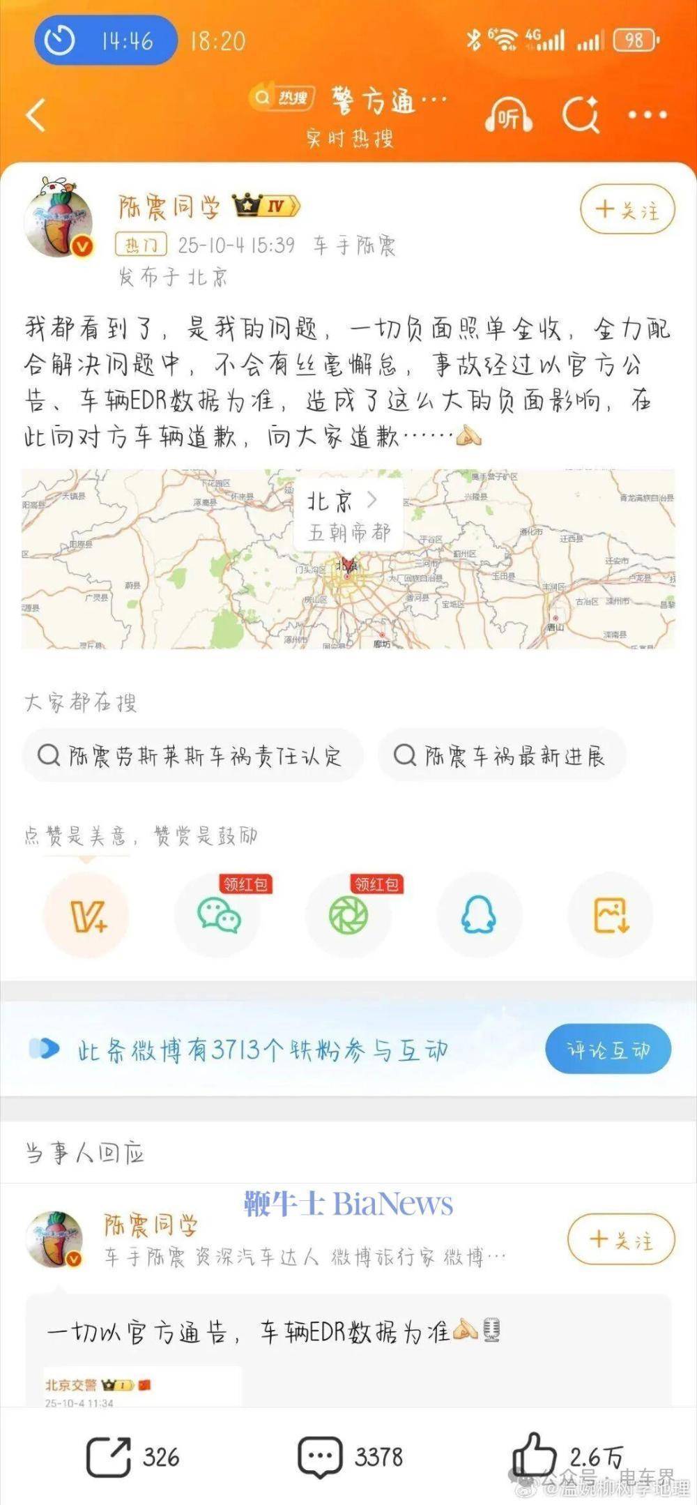 陈震说念歉微博,但只向受损的比亚迪车辆说念歉,激励网友质疑冷血,德不配位。探究布景: