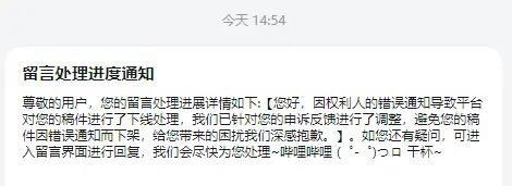 2月27日,金刚主东说念主收到哔哩哔哩平台对于稿件讲述的处罚效果:“因权柄东说念主的造作见知导致平台对您的稿件进行了下线处罚,咱们已针对您的讲述响应进行了革新,幸免您的稿件因造作见知而下架,给您带来的困扰咱们深感对不起。”
