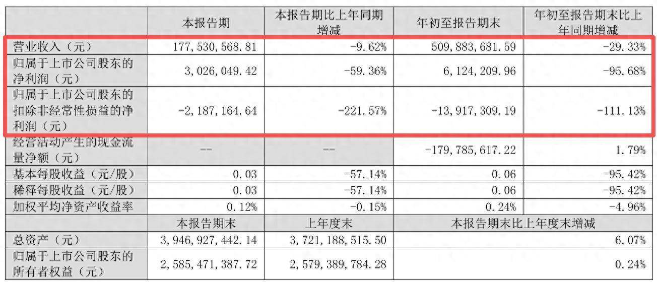 其中,第三季度,公司交易收入为1.78亿元,同比着落9.62%;归母净利润为302.60万元,同比着落59.26%;扣非归母净利润耗费218.72万元,同比着落221.57%。